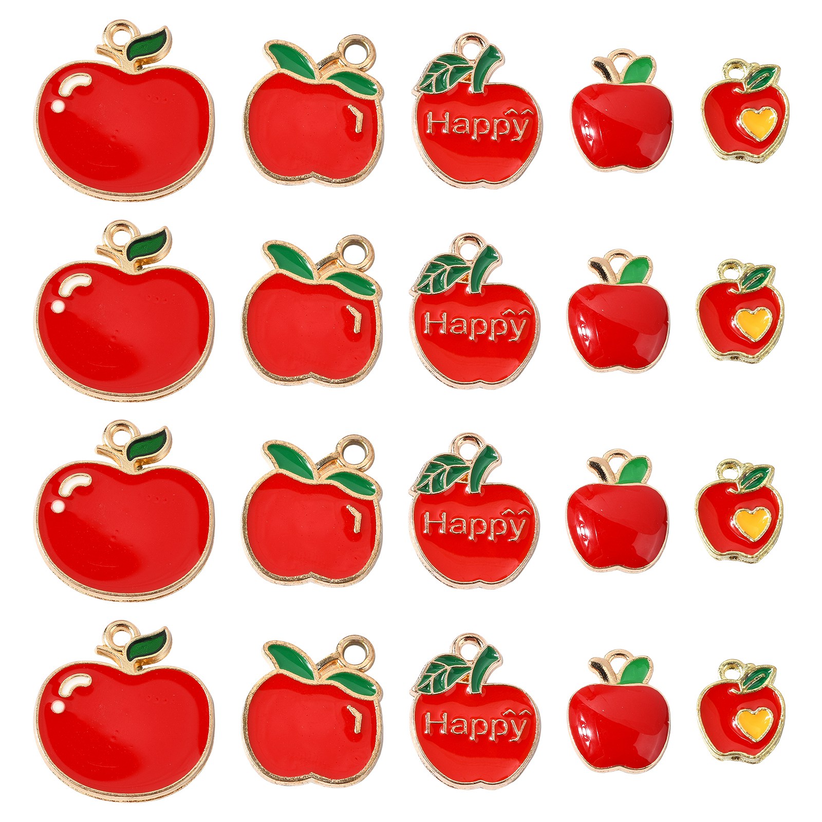 Apple with Word Happy: about 17.5x14x1.5mm, hole: 1.6mm, 6pcs;