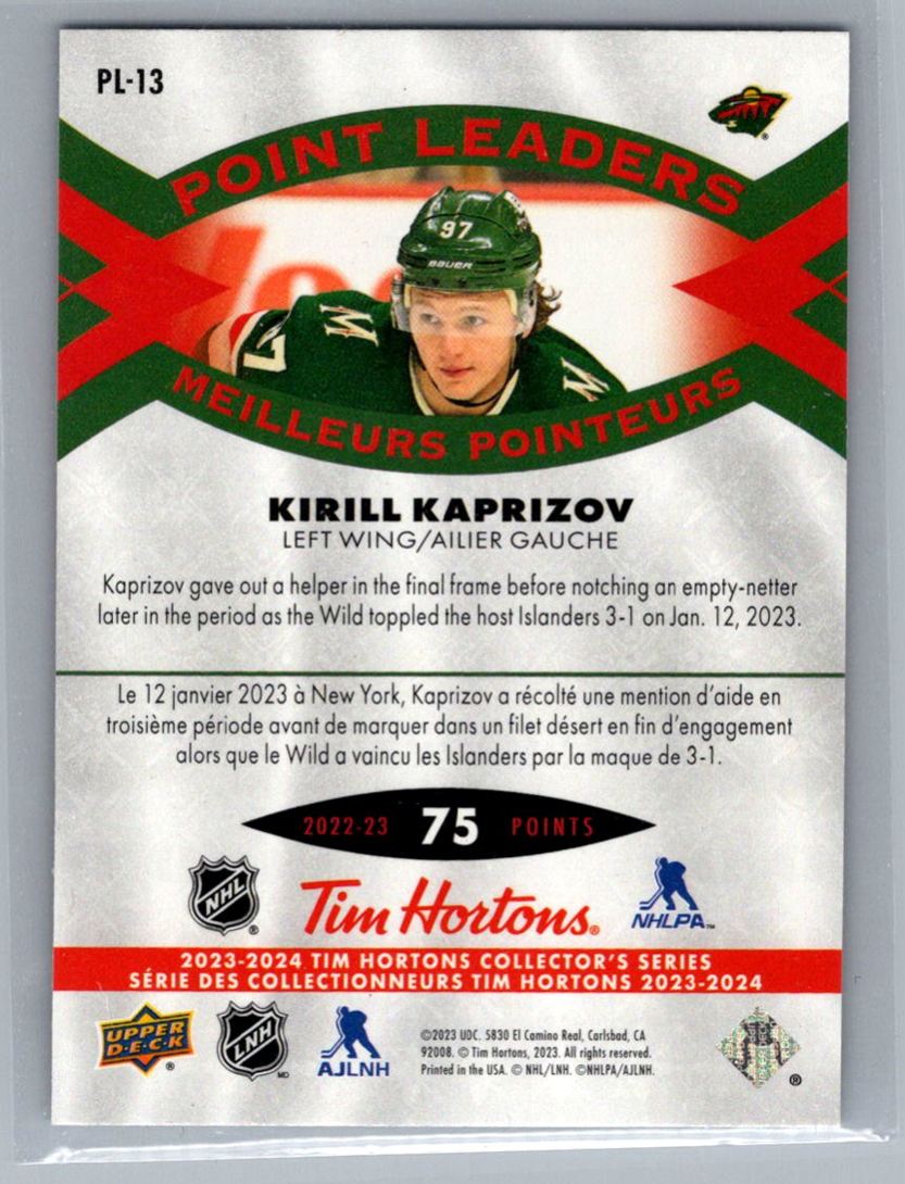 2023-24 Upper Deck Tim Hortons Point Leaders Kirill Kaprizov Minnesota Wild