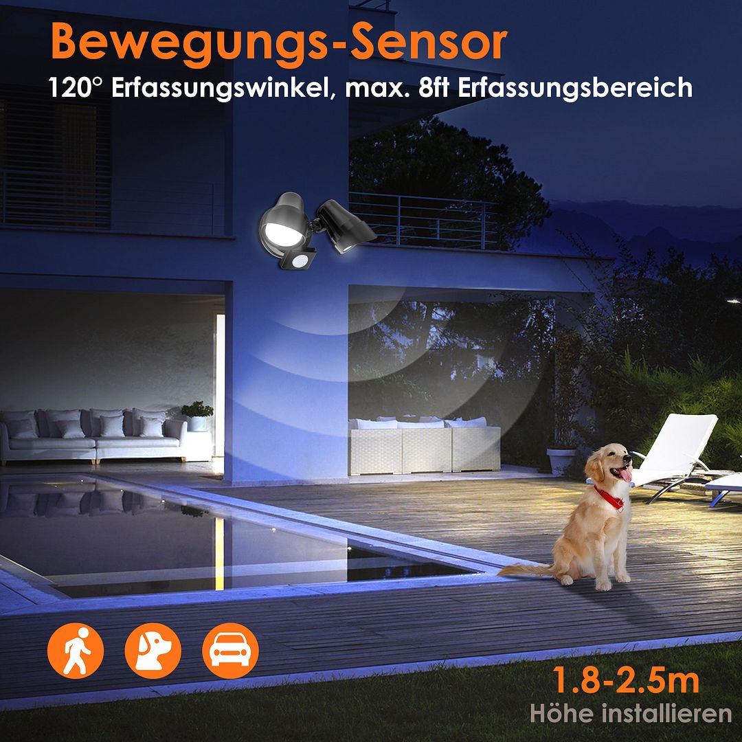 Diese Outdoor Motion Sensor Sicherheitsleuchte ist aus hochwertigem Material, IP65 wetterfest, hitzebeständig, frostbeständig und in der Lage, allen extremen Wetterbedingungen zu widerstehen gebaut.