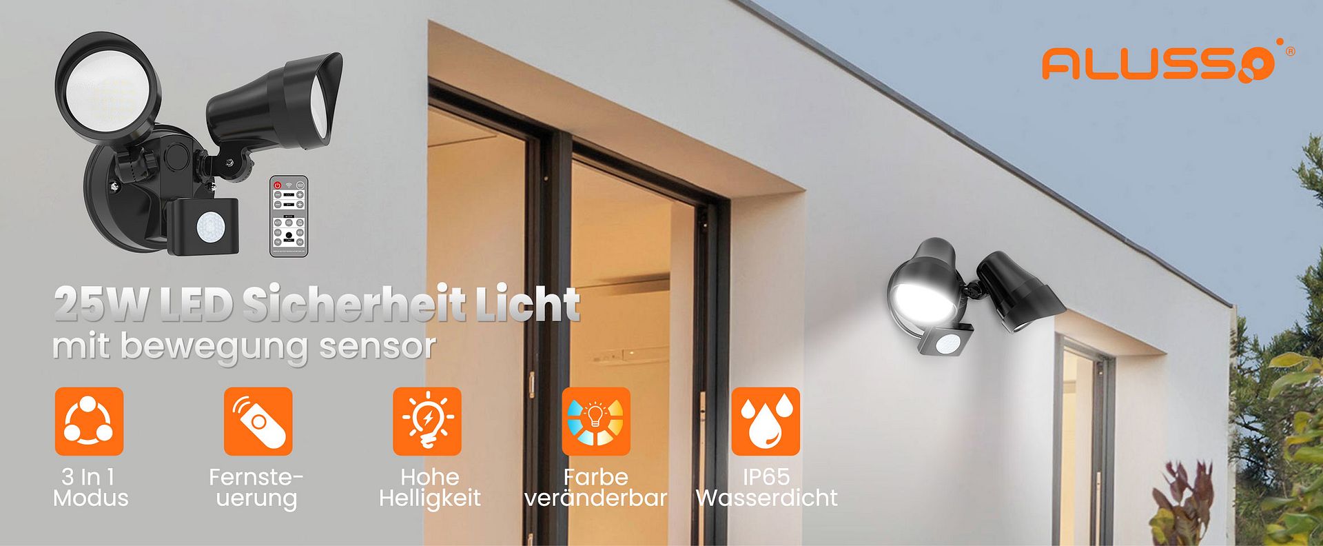 ALUSSO 25W 2000LM LED Sicherheitsleuchte kann 150W traditionelle Glühlampe ersetzen und mehr als 85% der Leistung spart. Es bietet hellere Beleuchtung und größere Reichweite der Beleuchtung.