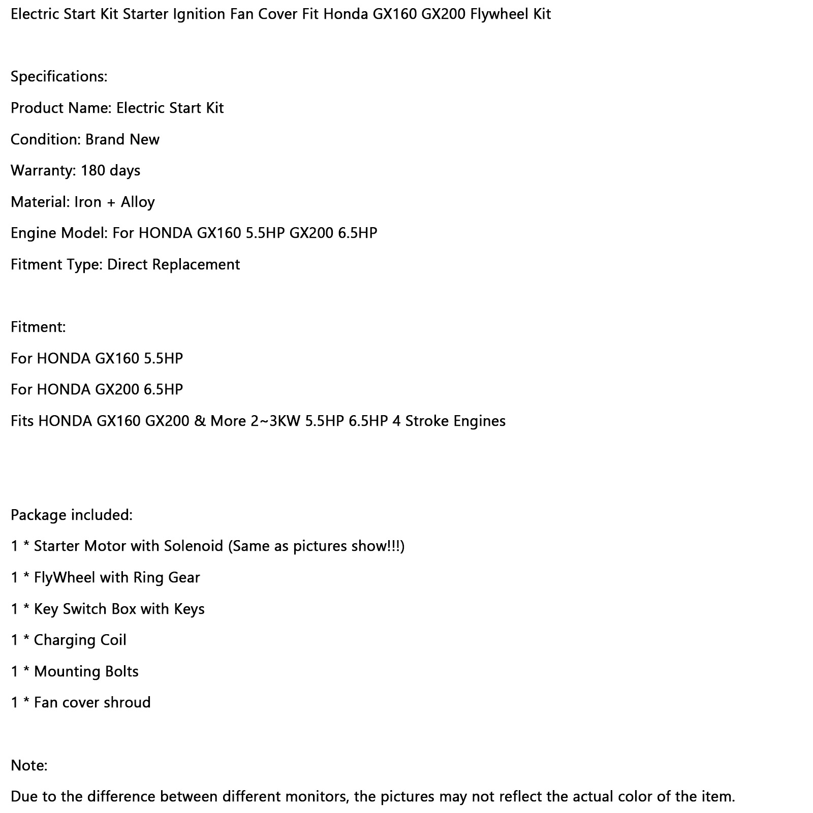 Electric Start Kit Starter Ignition Fan Cover Fit Honda GX160 GX200 Flywheel Kit