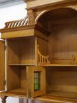 Der Aufsatz verfügt über zwei großen und zwei kleinen Türen mit grüner Bleiverglasung in der Mitte, sowie ein Regalfach.