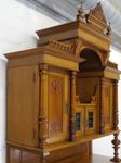Die originalen Messingbeschläge, floralen und ornamentalen Schnitzereien sowie die gedrechselten Säulen tragen sehr zum optischen Wert dieses Möbels bei.
