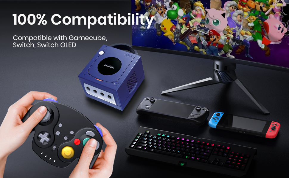 2.4 GHz Wireless GameCube Controller Switch Online Controller, USB Receiver & NGC Receiver, Compatible with Windows PC iOS Mac Raspberry Pi, GameCube/Switch - (Rechargeable) (Plug and Play)
