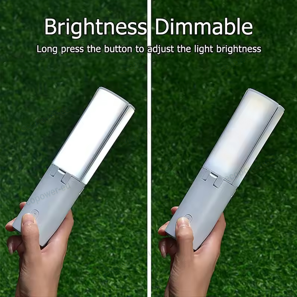At the same time, the rechargeable lanterns also with a stepless dimming design, Long press the power button to adjust the brightness of the camping lamp.