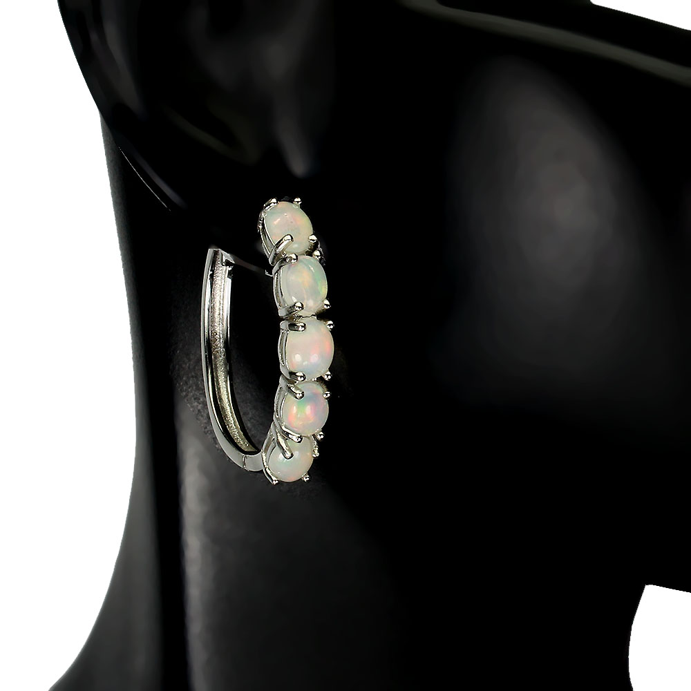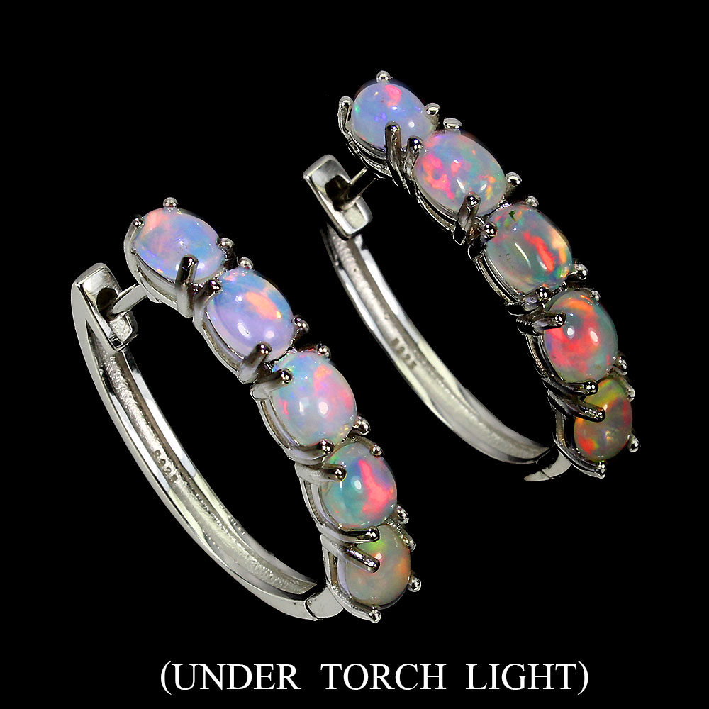 Unheated Oval Fire Opal Rainbow Full Flash 5x4mm 925 Sterling Silver Earrings