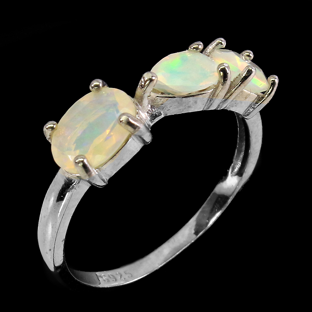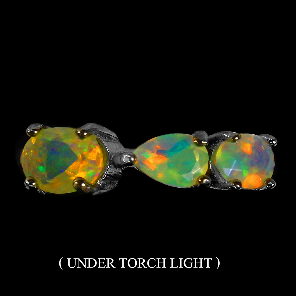 Unheated Oval Fire Opal Rainbow Full Flash 7x5mm 925 Sterling Silver Ring