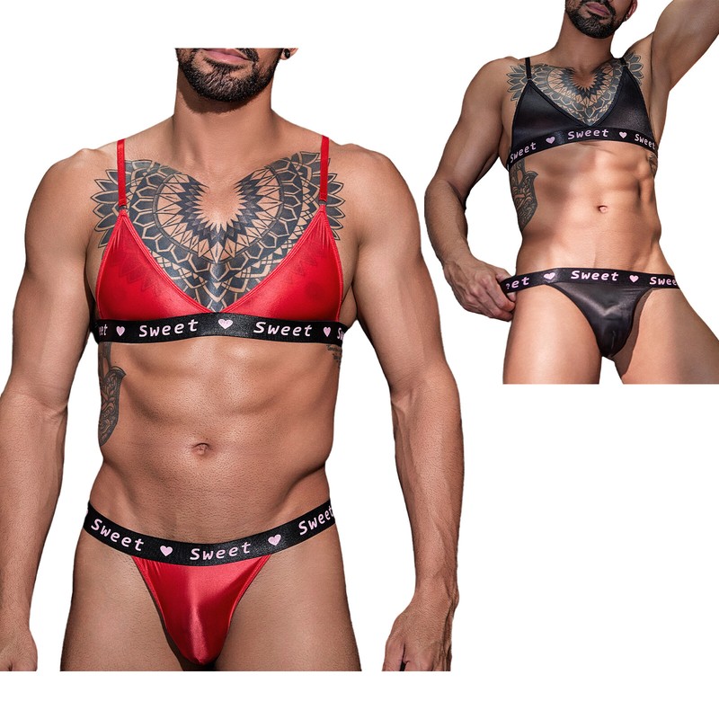 Solid color, glossy surface, "sweet" letters, show your muscles and body.