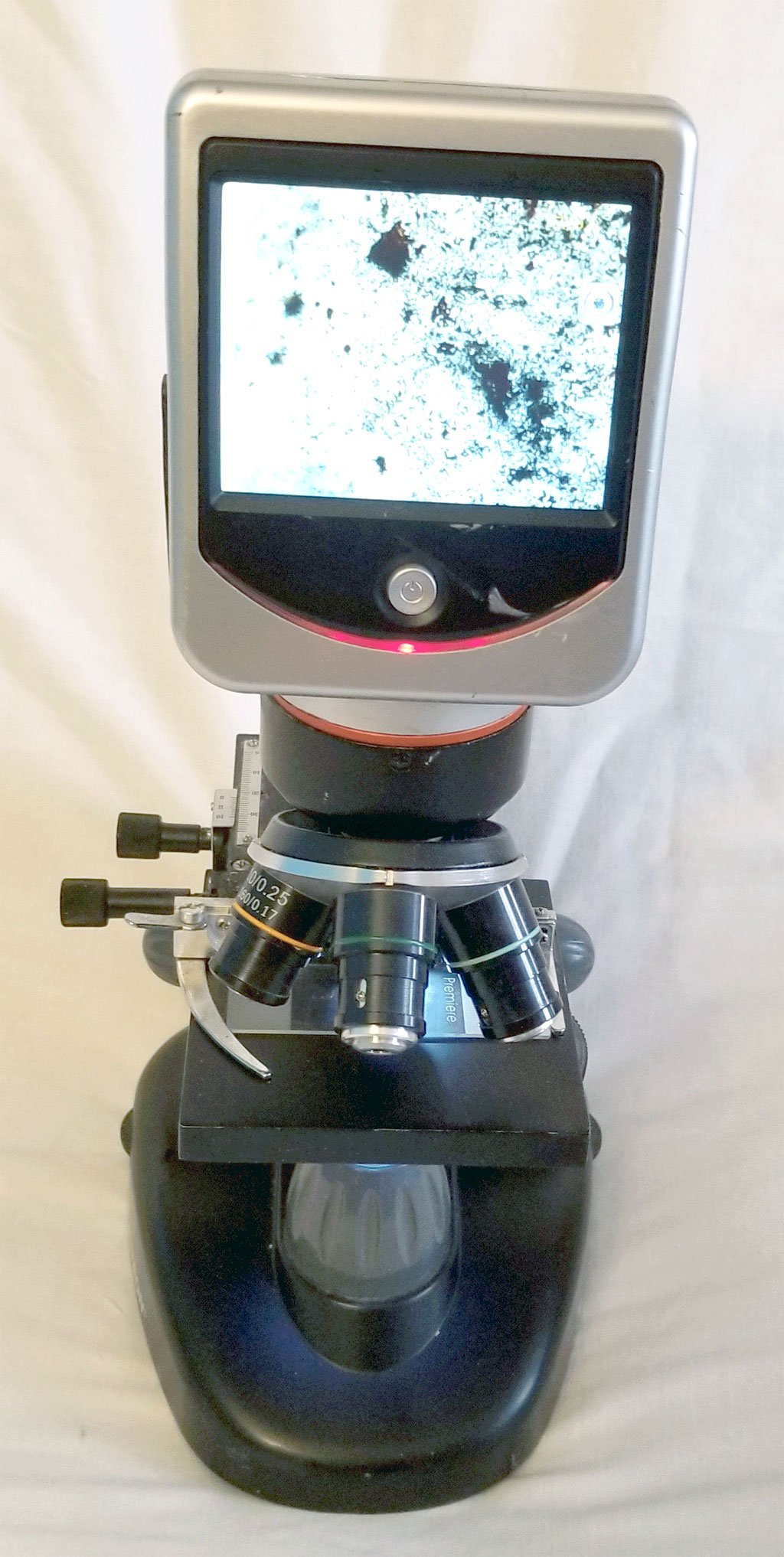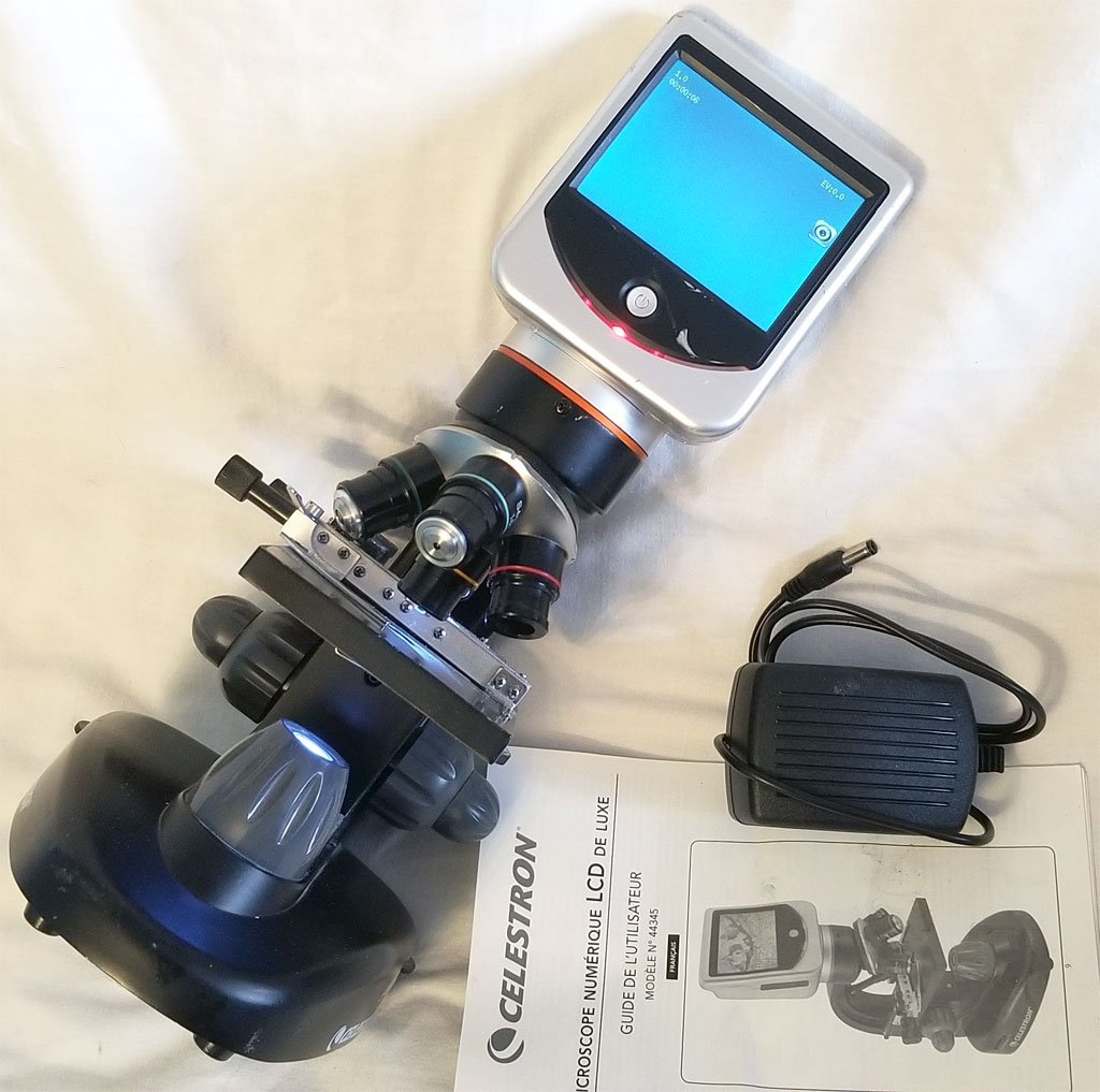 The Celestron LCD Deluxe Digital Microscope with its integrated 5 megapixel CMOS sensor camera, and 3.5" touch-screen panel, is an advanced microscope. Capture still images or video directly onto the 1GB internal memory, or onto SD cards. The 3.5" touch-screen panel rotates 180° horizontally, allowing for easy viewing.