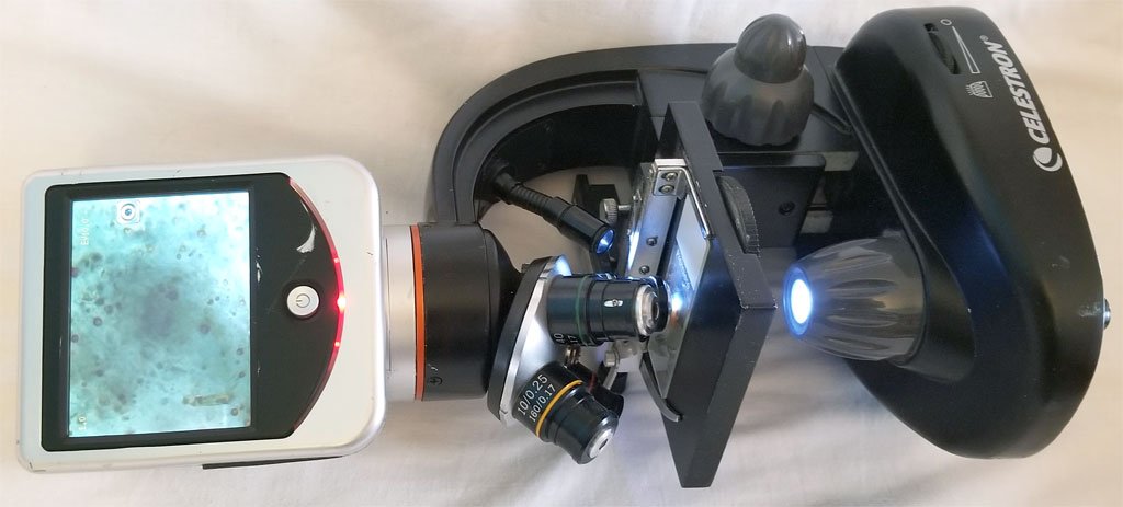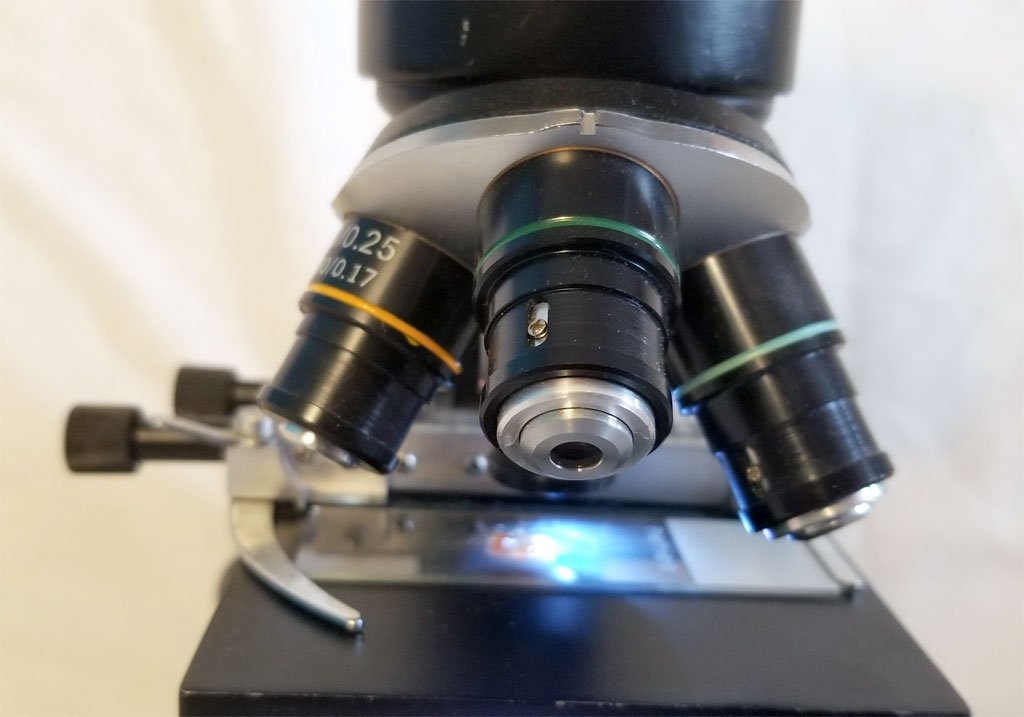 The microscope features 4x, 10x, 20x, 40x objective lenses, along with a 3-position diaphragm filter wheel. Keep your specimens sharp with the microscope's coarse and fine focusing controls. The LED illumination from above and below can be adjusted, and provides an energy-efficient, cool, white light. Given the extraordinary life of the LED bulbs, it is unlikely that the lighting source will ever need replacement. The microscope can be powered with the included AC adapter or in the field use the 6v battery pack (4-AA batteries not included).