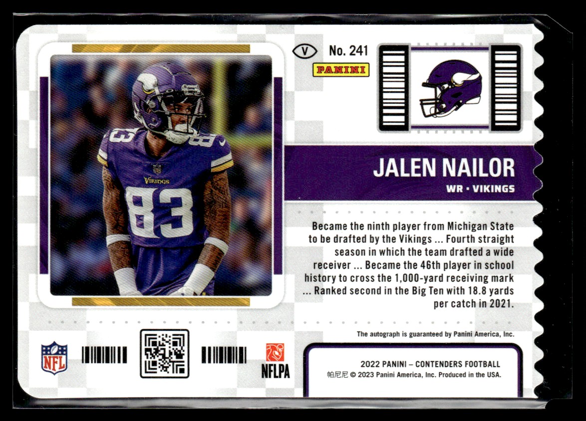 | 2022 Panini Contenders Rookie Ticket Stub Variation Jalen Nailor RC Auto 62/83 |