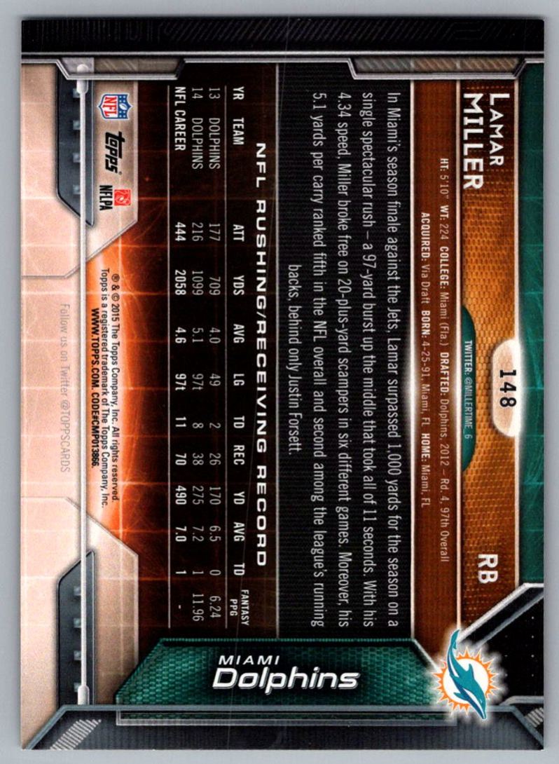 2015 Topps Lamar Miller Miami Dolphins #148