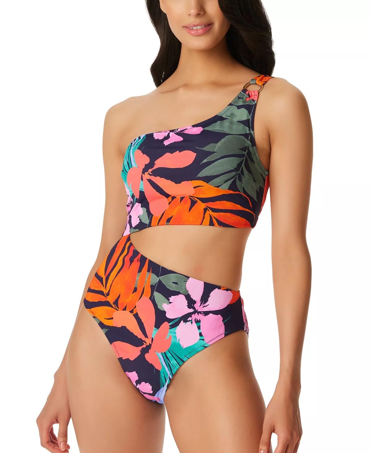• Double the asymmetry with a single strap and side cutout, the Island Paradise swimsuit is great for a stylish vacation.