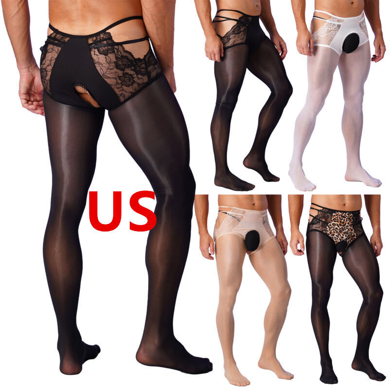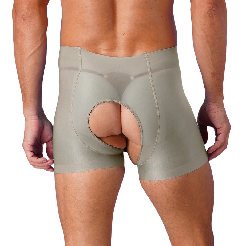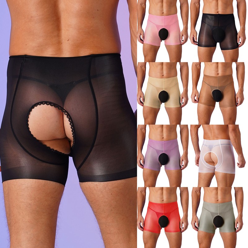 Crotchless see-through boxer brief underpants stretchy shorts underwear for men.