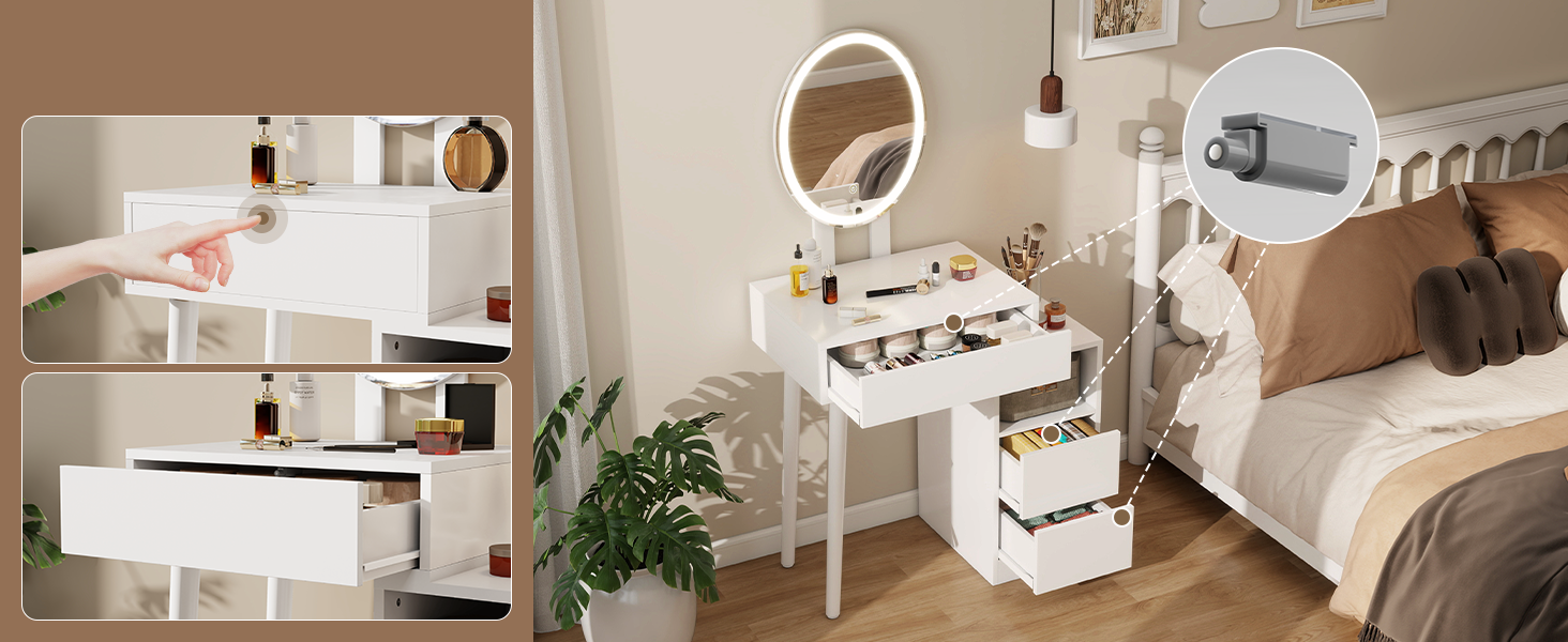 ✅The sleek white finish and contemporary design of this makeup table seamlessly blend with any décor, making it a stylish addition to your room.