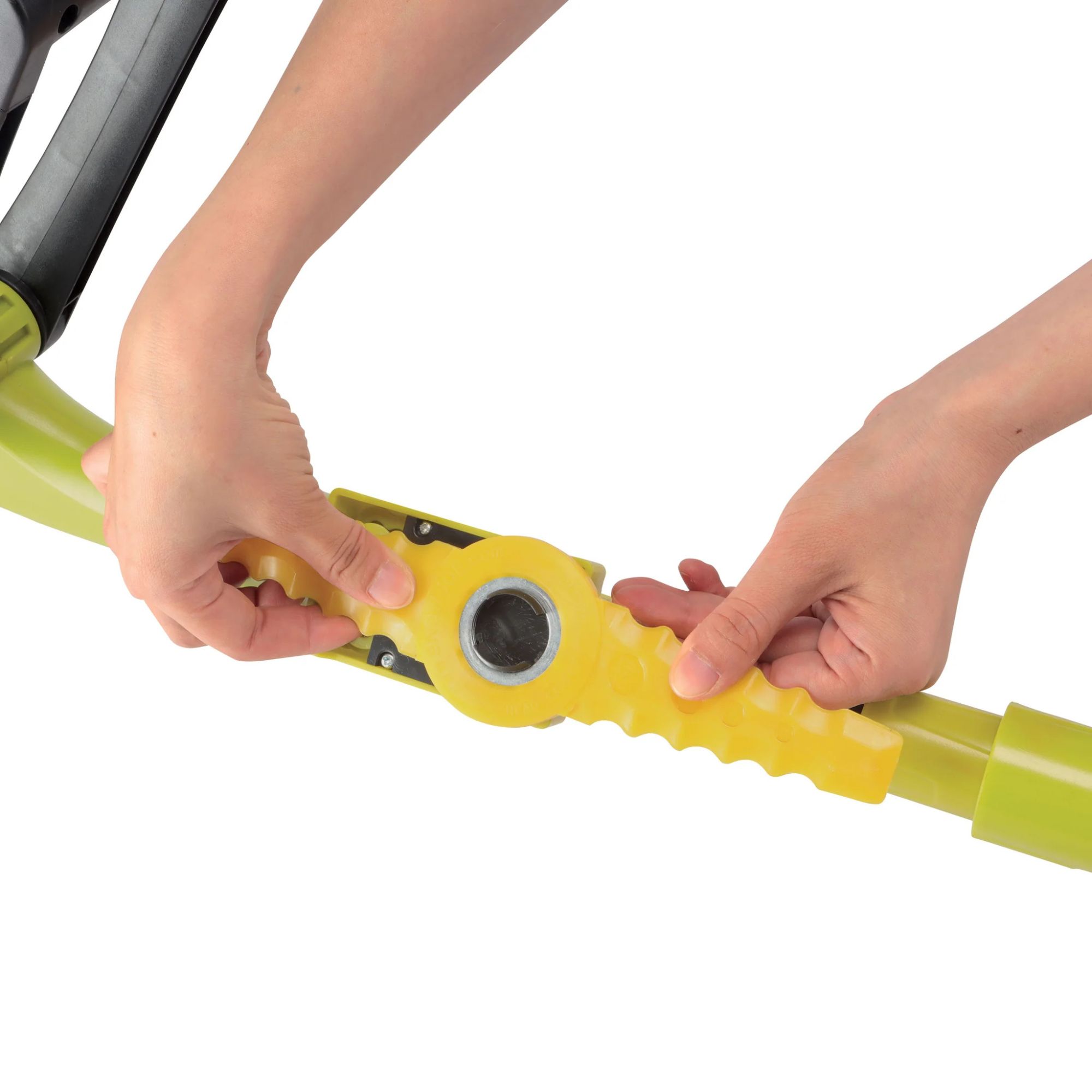 Or twist it up switch it up! The 180º rotating Twist-N-Groom head converts from trimmer to edger in seconds. Edge along flowerbeds, sidewalks, and walkways for a crisp, precise line — every time. Lightweight at under 6 lbs, SUN JOE features a. adjustable auxiliary handle and telescopic shaft which extends from 36.6" to 48.4” for maximum comfort and control.
