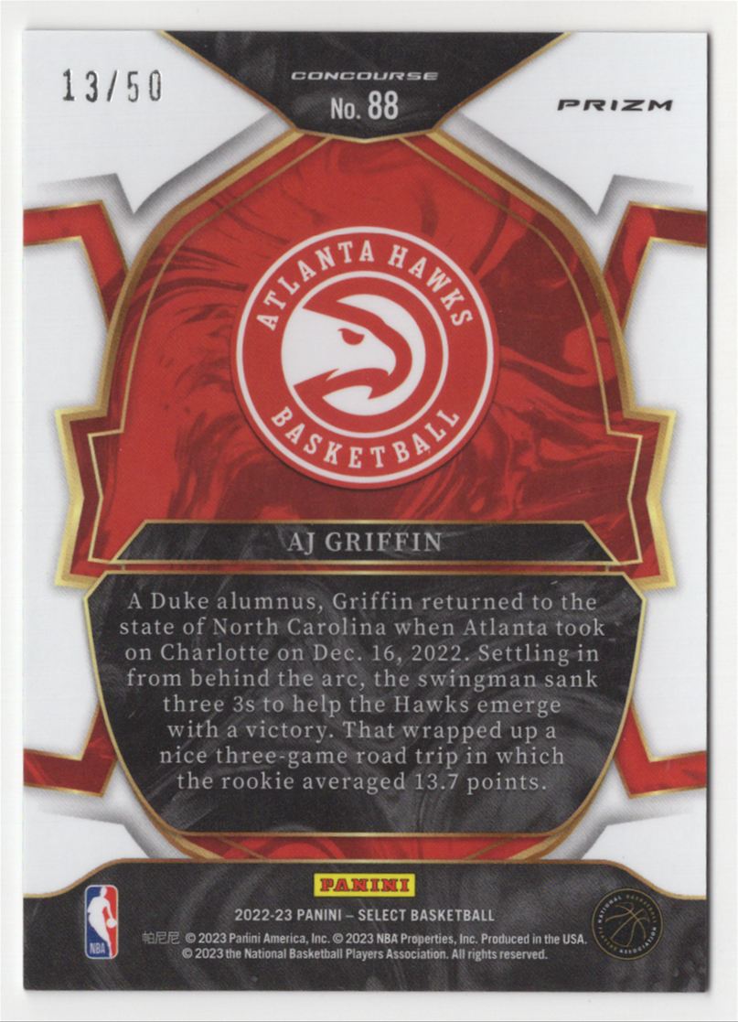 2022-23 Panini Select Green Wave Prizm AJ Griffin RC Atlanta Hawks #88 /50