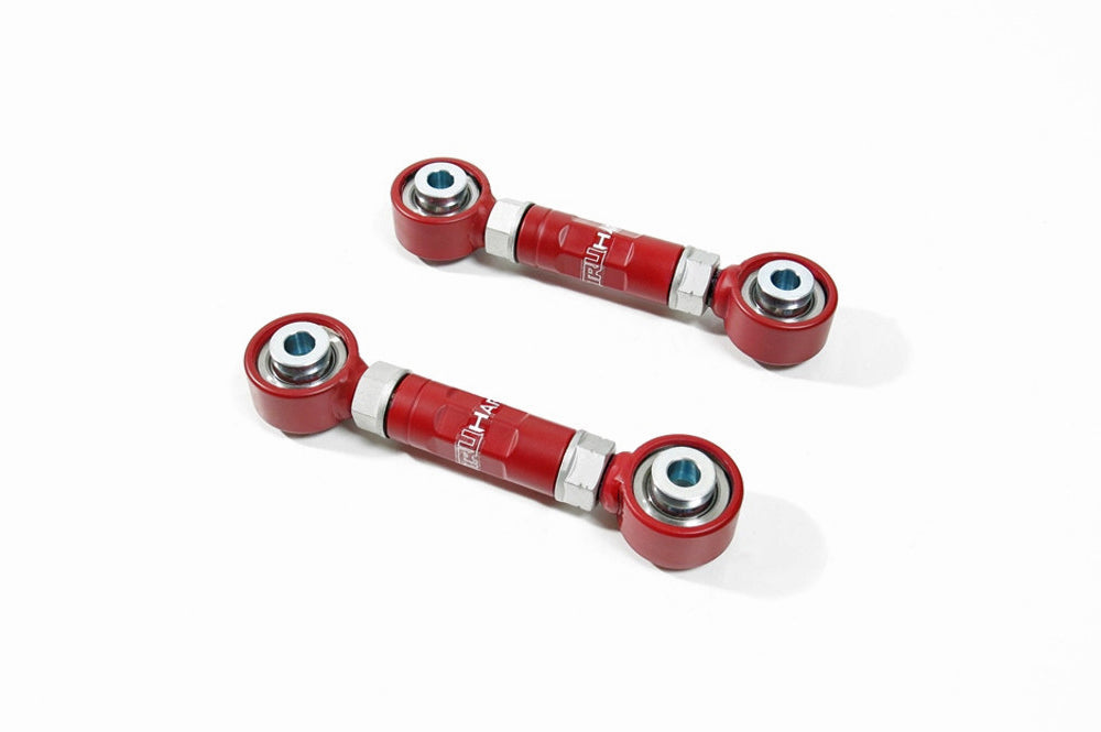 TruHart rear toe arms replace your factory arms with strengthened adjustable arms. These toe arms utilize spherical pillowball bushings which allows for less deflection and provides a more direct feel road feel than OE bushings.