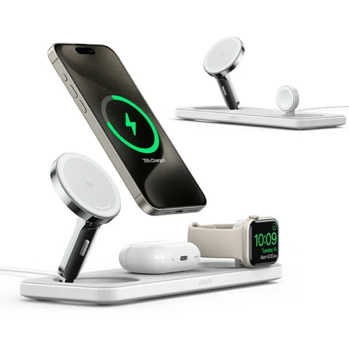 Redefine your wireless charging experience with this Anker MagGo Qi2 three-in-one pad wireless charging station. This accessory is Qi2 certified with 15W power output to enable super-fast charging of your iPhone. Plus, this product is Apple Certified for quick charging of Apple Watch. The space-saving and adjustable design improves your overall charging setup and experience.