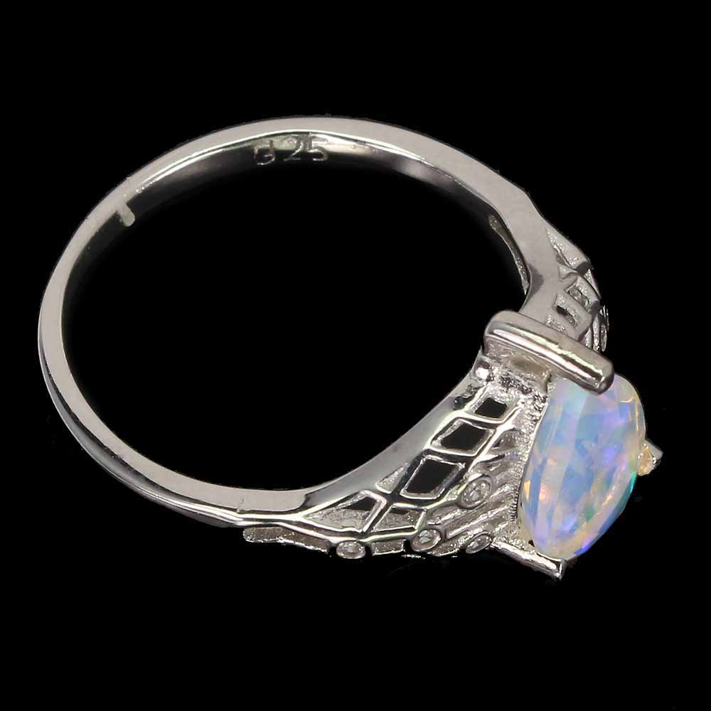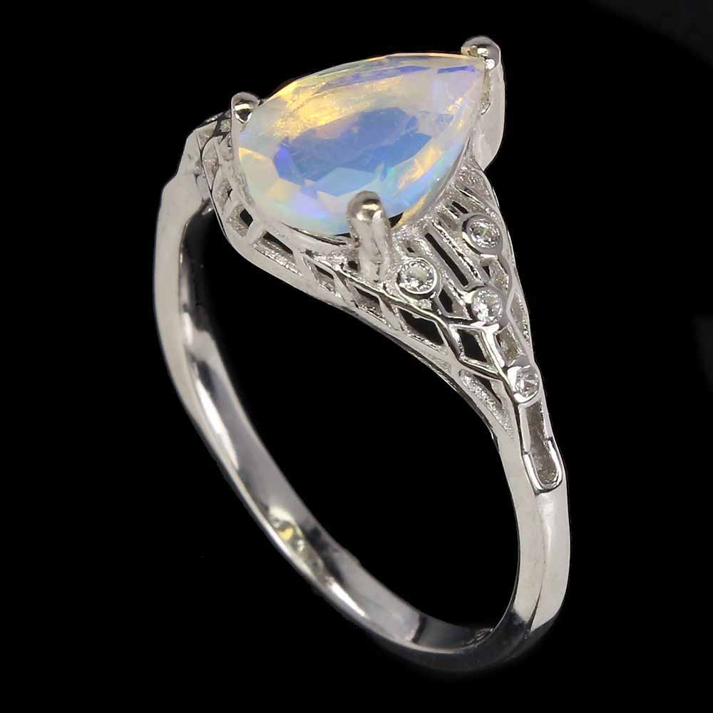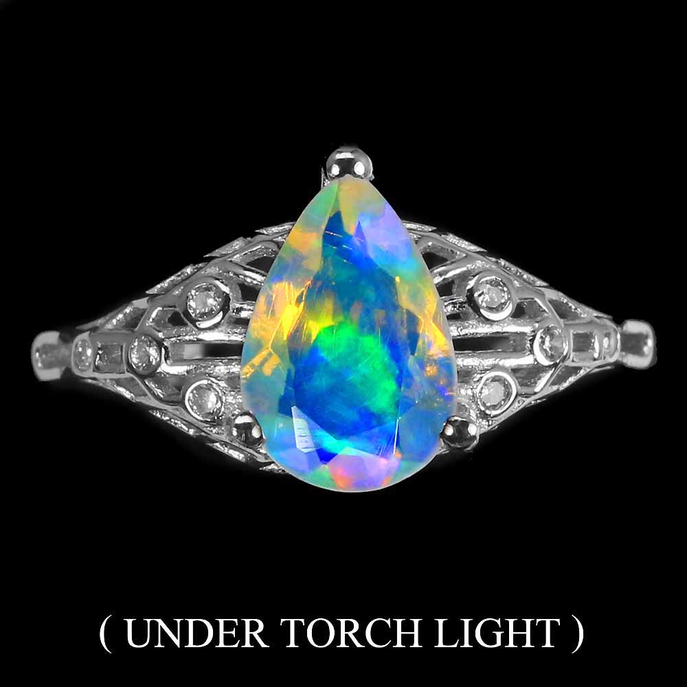 Unheated Pear Fire Opal Rainbow Full Flash 8x6mm Cz 925 Sterling Silver Ring 6.5