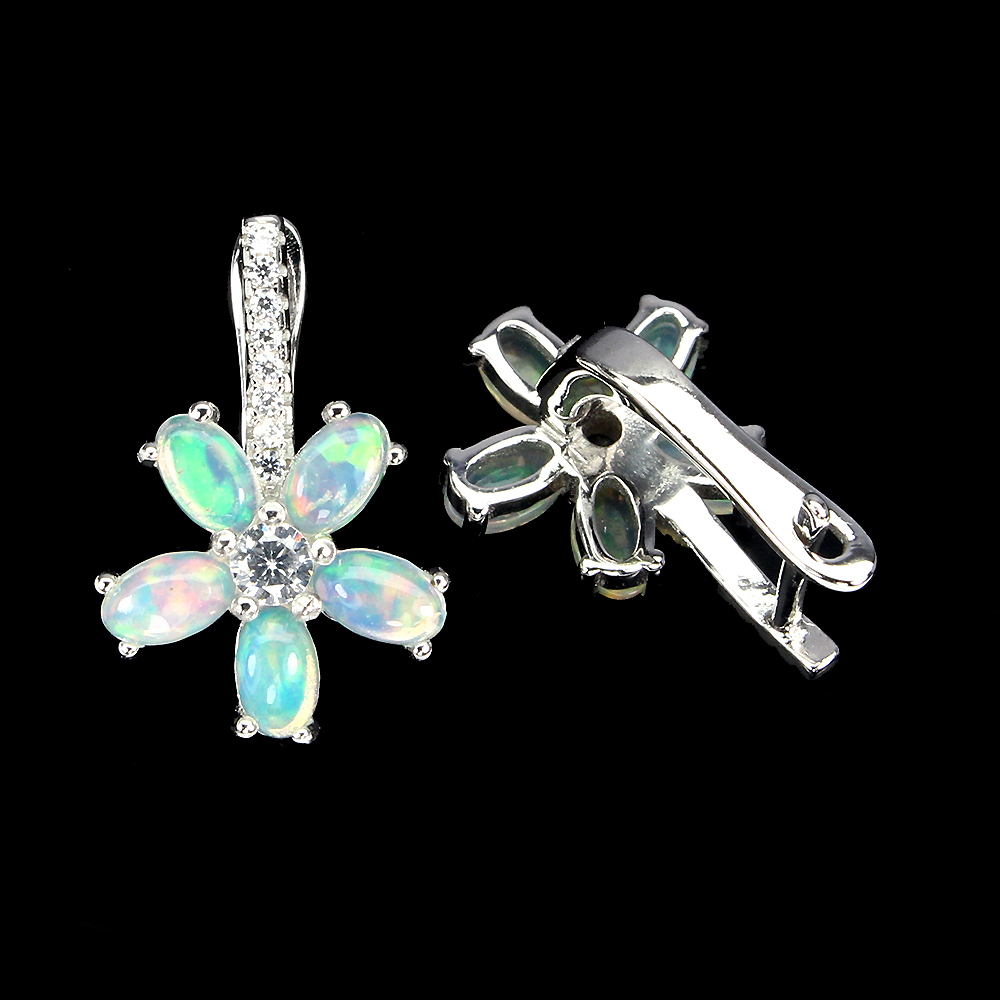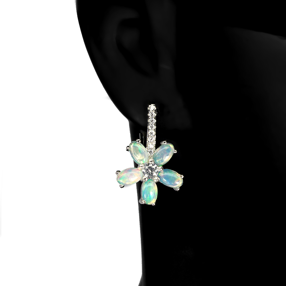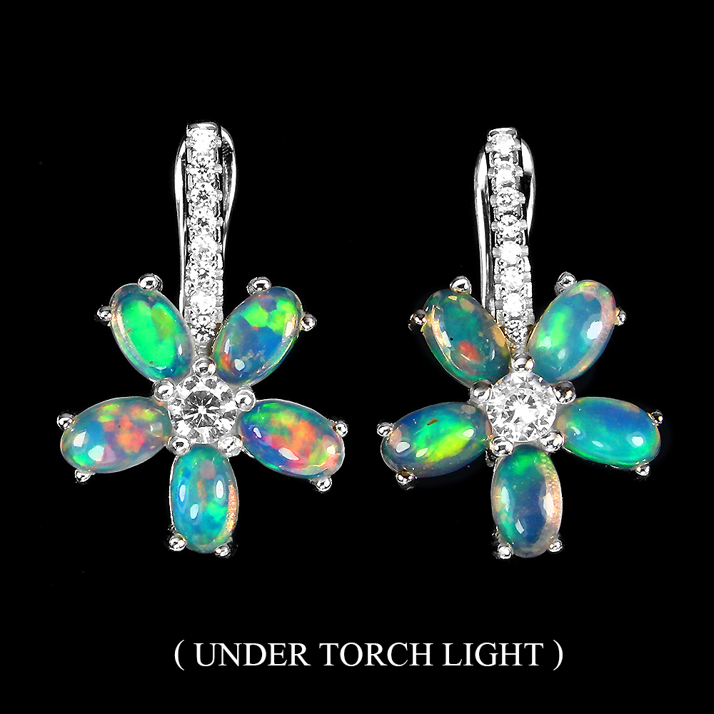 Unheated Oval Fire Opal Rainbow Full Flash 5x3mm Cz 925 Sterling Silver Earrings