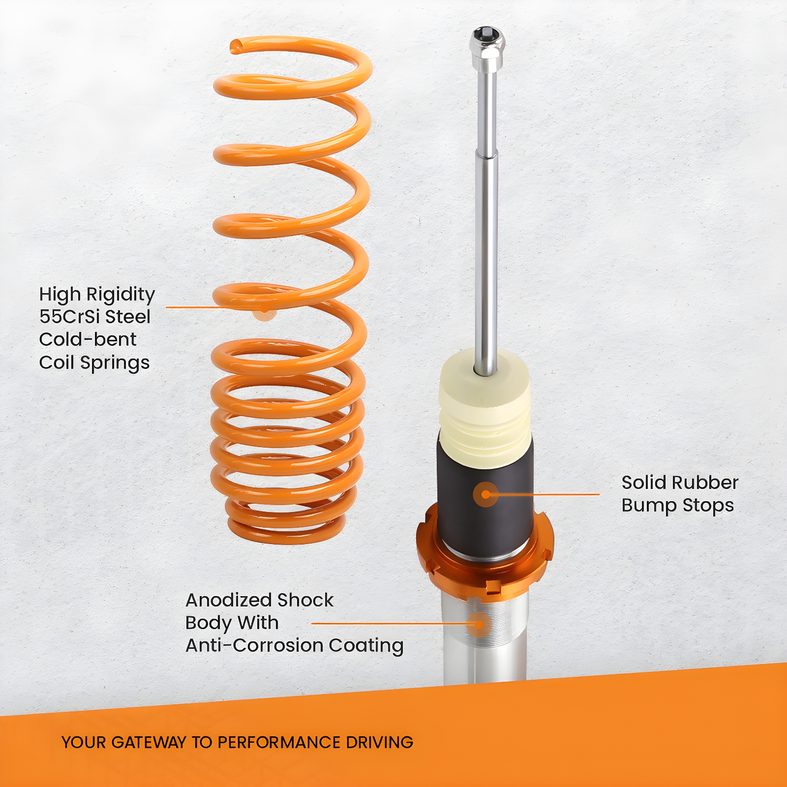 Die MXR-B1 Serie von maXpeedingrods ist ideal für diejenigen, die die alte abgenutzte Federbeine wechseln und gleichzeitig das Handling verbessern möchten. Er ist höhenverstellbar und hält die OE-Fahrqualität weitestgehend aufrecht.