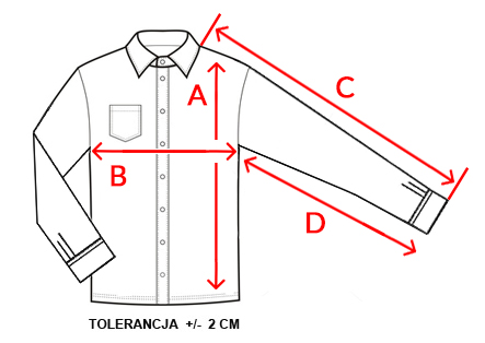 (A) Gesamtlänge; (B) Brustbreite; (C) Außenarmlänge; (D) Innenarmlänge;