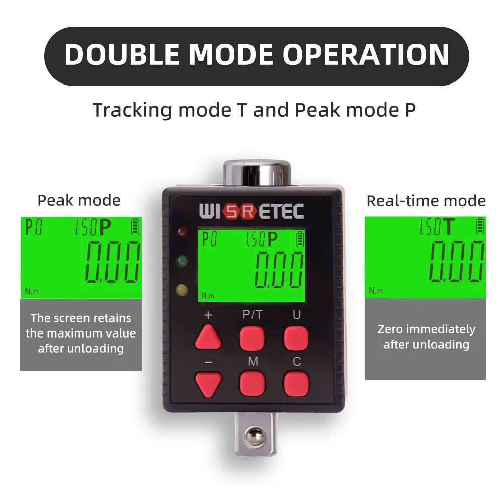 Digital torque meter for precise tightening and loosening control, with lightweight, easy operation, multi-unit conversion, audible alarm, adjustable in the clockwise and counterclockwise direction, etc. 10 groups of different torque values can be preset PO-P9, for different bolts and torque requirements, can be preset in advance, directly call. Preset values are displayed in the first column of the screen, making it convenient for the operator to view the current preset values and groups. Comes with a plastics storage box for easy storage and convenient transportation, and all the accessories can be neatly stored. Widely used in the automobile, bicycle motorcycle, DIY, and machinery repairing industries.