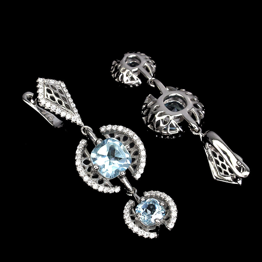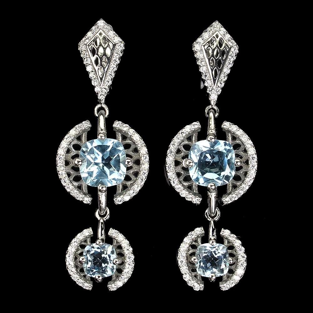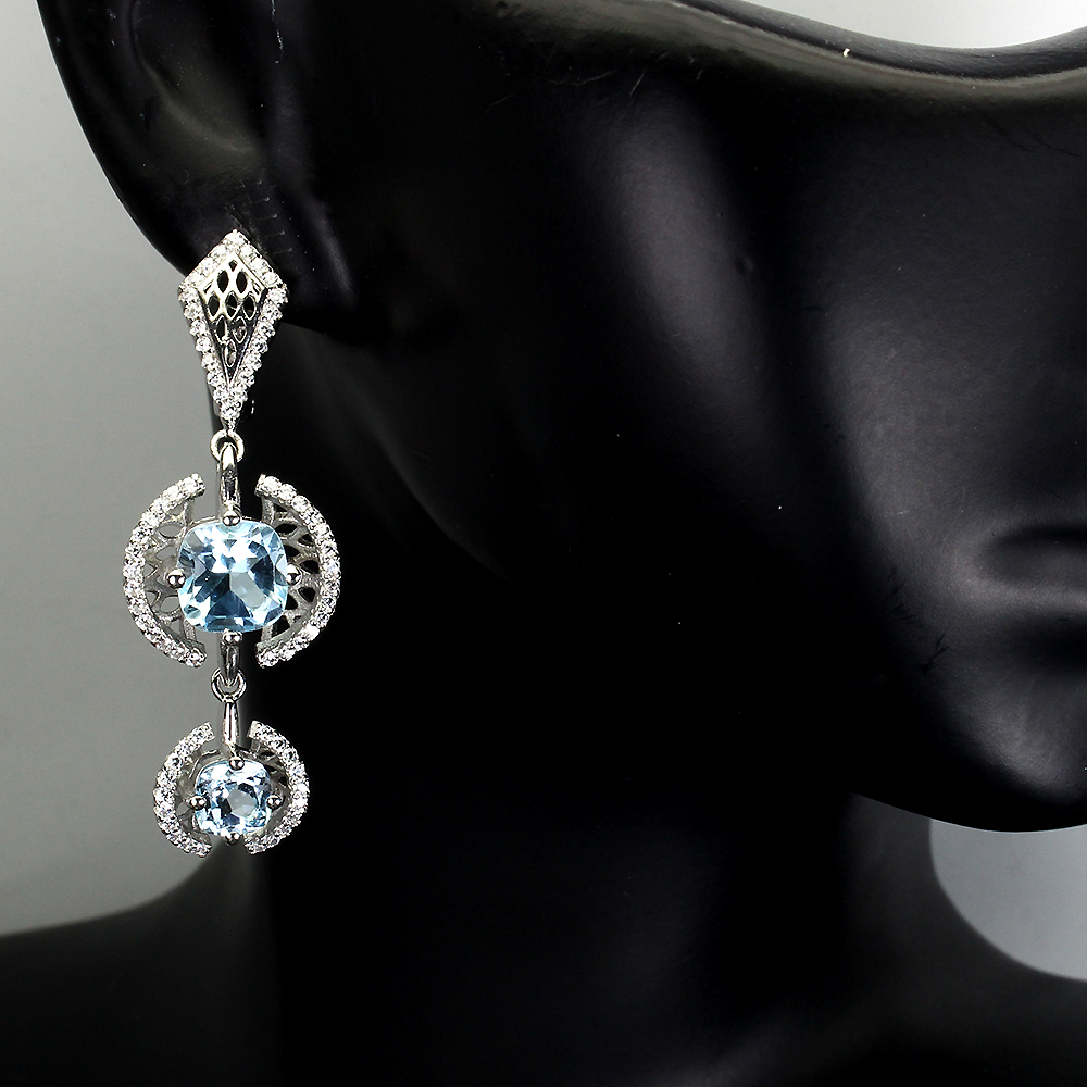 Cushion Sky Blue Topaz 7mm Cz 14K White Gold Plate 925 Sterling Silver Earrings