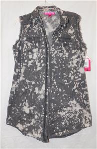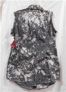 Jr. Bleach Splattered Sleeveless Snap Front Shirt-Almost Famous