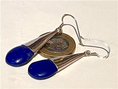 LAPIS BLUE LAZULI DROP STERLING SILVER STYLE EARRINGS