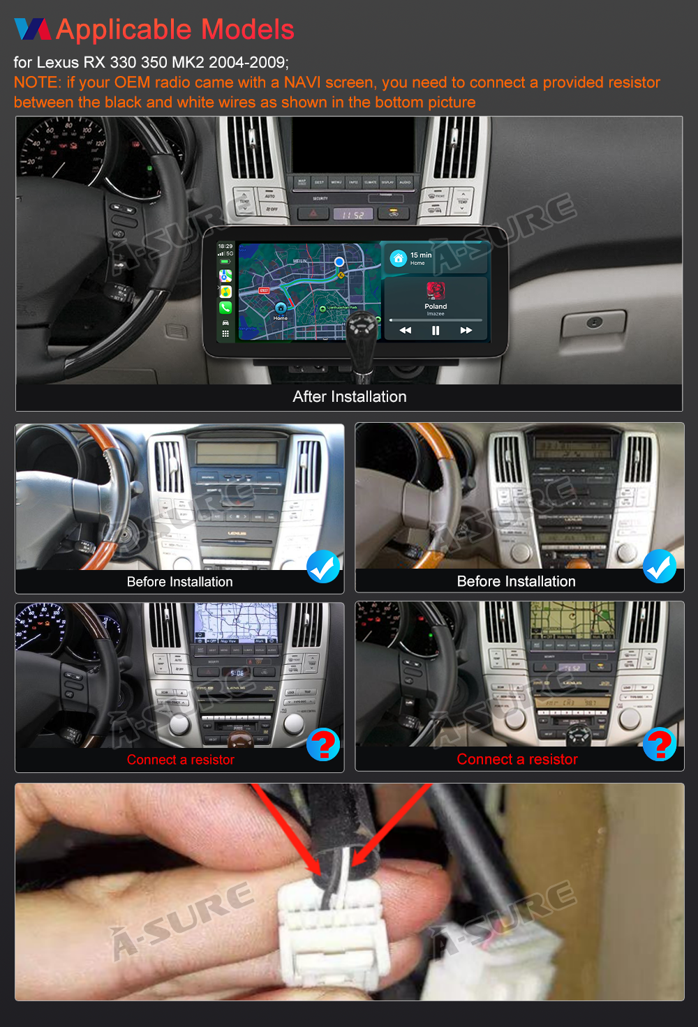 12.3 inch Car Stereo Radio GPS Navigation Head Unit For Lexus RX330 RX350 400H 2004-2009 QLED IPS Touchscreen Multimedia Player, 8 Core 4+64GB Android Auto Wireless Carplay, SWC, DSP, Bluetooth