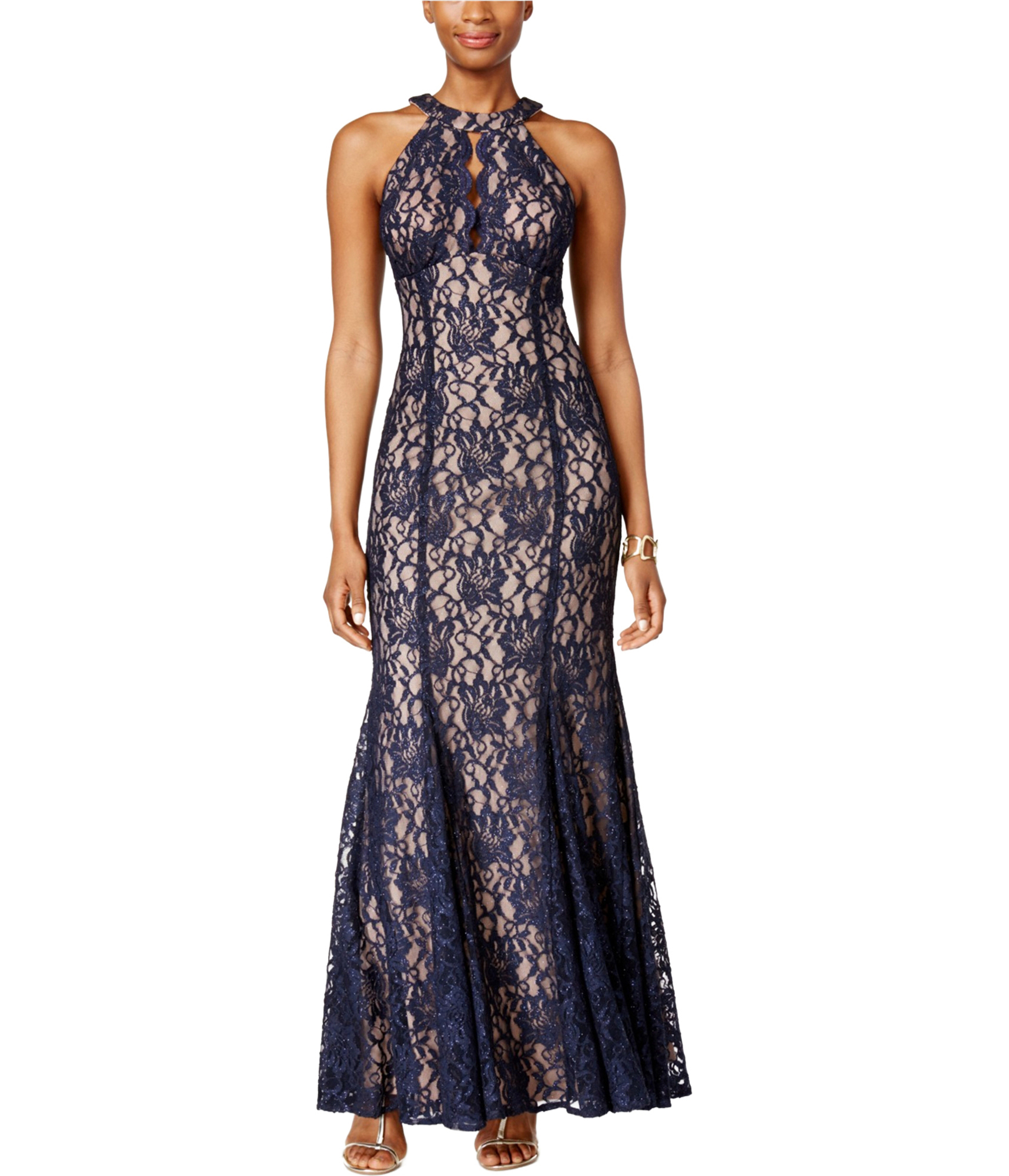 Nightway Womens Lace Keyhole Halter Gown Dress