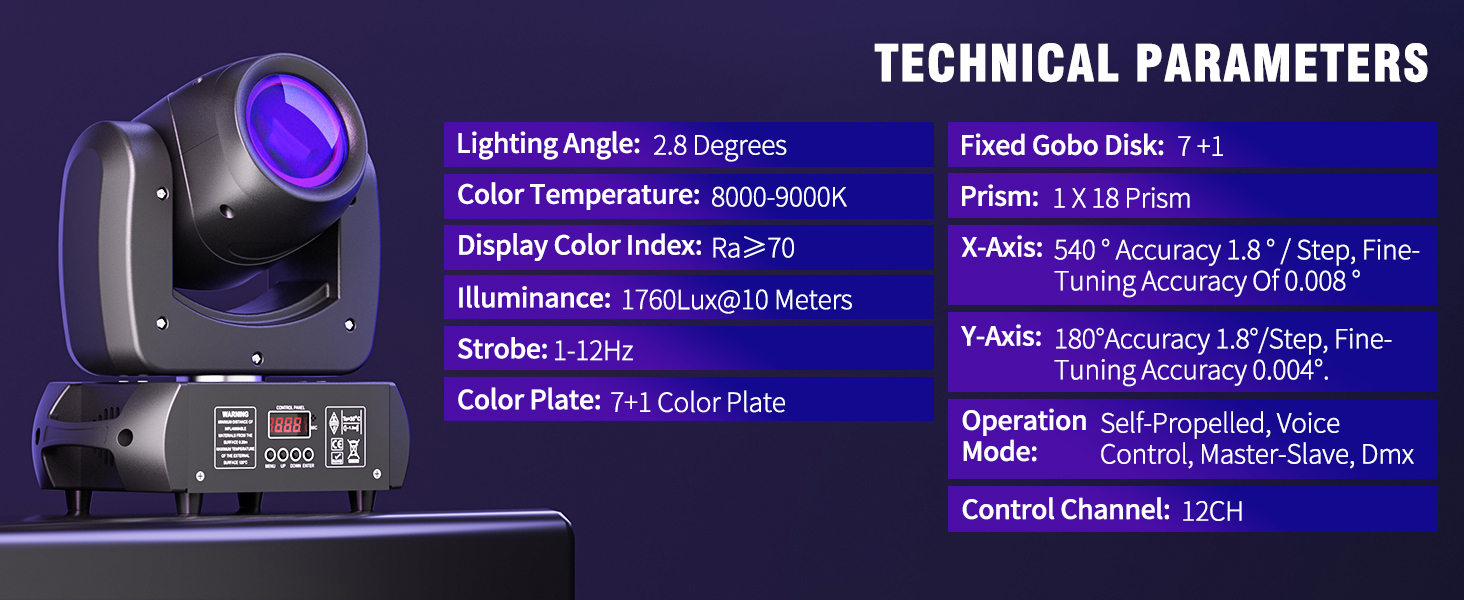 2. Advanced Prism Effect: The 18 prism design creates a rich and varied beam effect. The addition of prisms makes the light radiate fascinating refraction and scattering in the space, adding more layers.