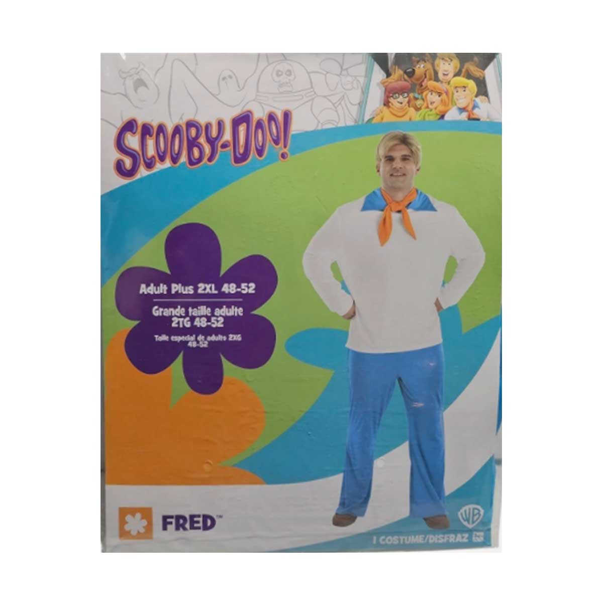 Take the Lead as Scooby-Doo's fearless leader with this adult plus size Fred costume. Designed in true Scooby-Doo style, this costume features a long-sleeve shirt with a retro 70s-inspired blue collar, blue bell bottoms and an iconic orange scarf—perfect for solving mysteries with the gang. This costume delivers a faithful recreation of the beloved cartoon character. Made from soft French terry fabric, it keeps you comfortable whether you're out trick-or-treating or dancing at a party. Its nostalgic design and easy fit make it a hit with Scooby-Doo fans of all ages.