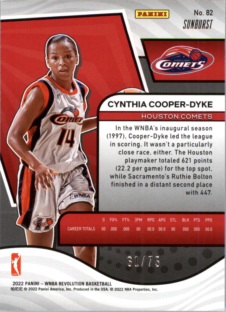 2022 Panini Revolution WNBA Sunburst #82 Cynthia Cooper-Dyke /75 - BSK