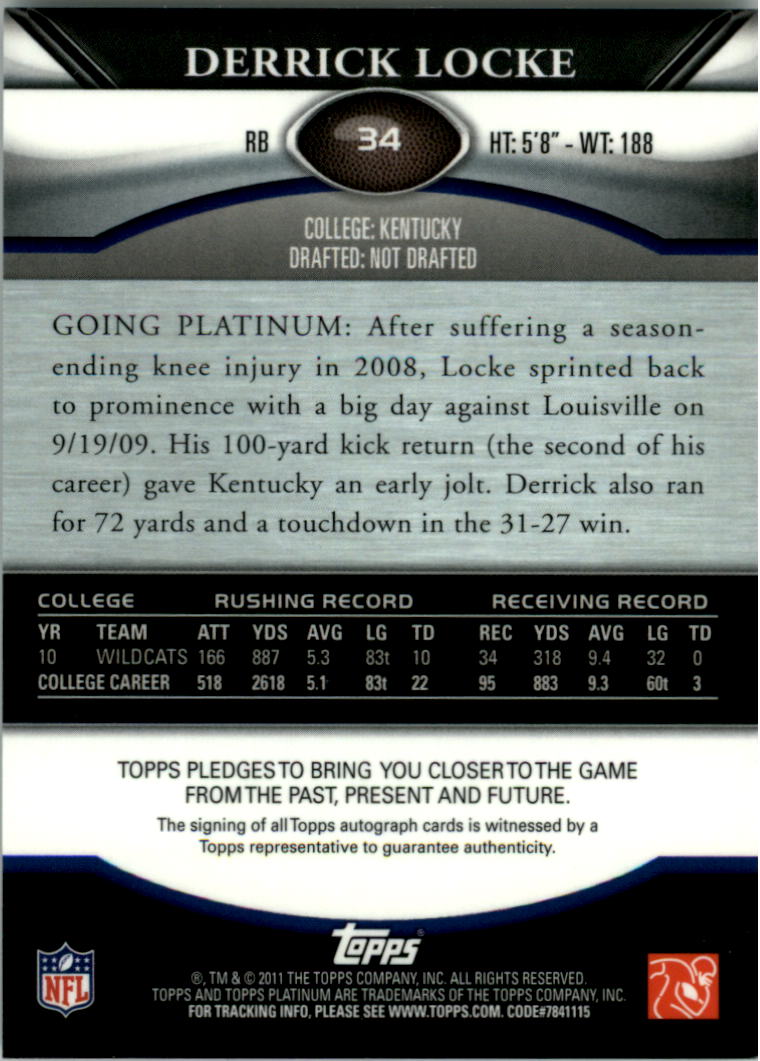 2011 Topps Platinum Rookie Autographs #34 Derrick Locke Auto /1000 - FB