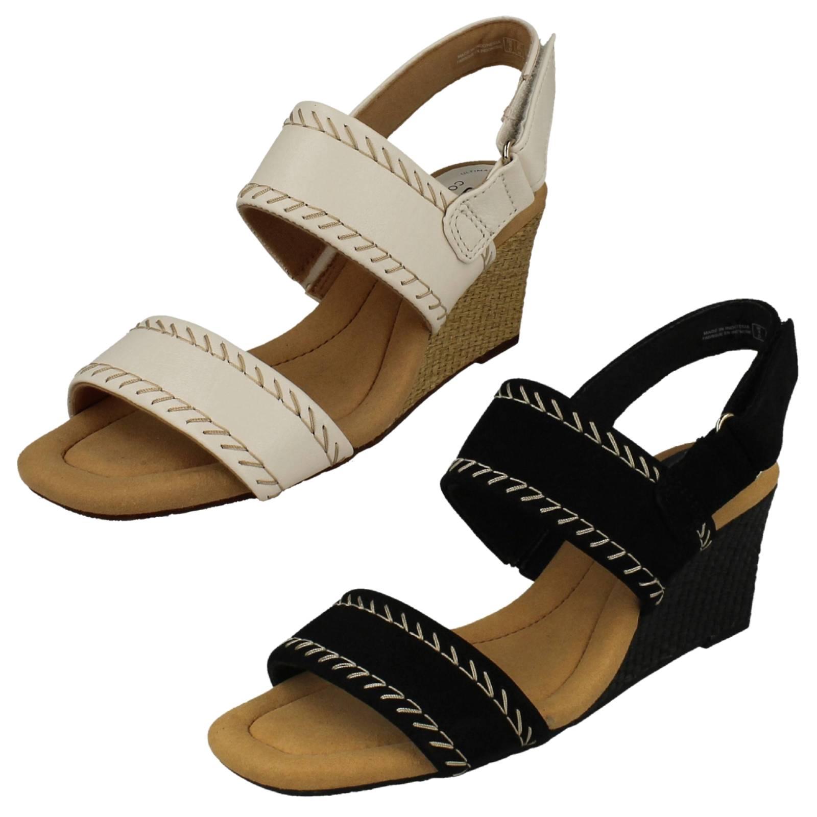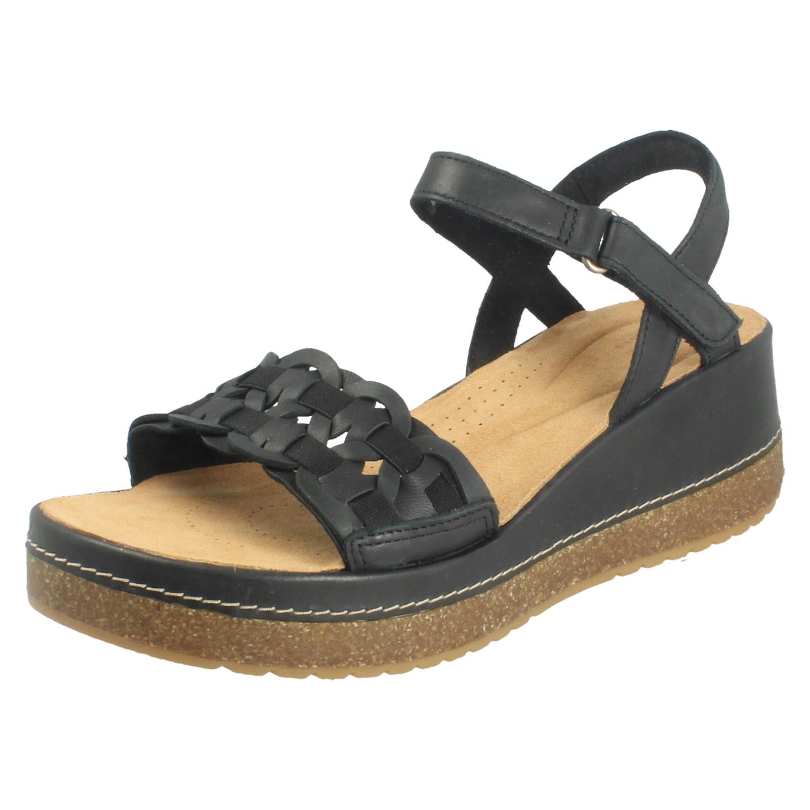 Damen Clarks Leder Keil offener Gurt Summer Sandals Schuhe, Kassanda Bar