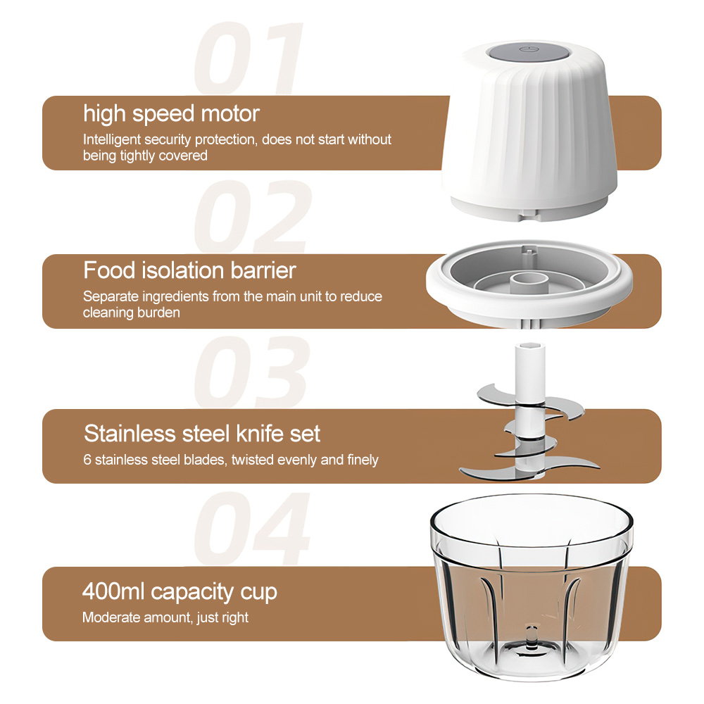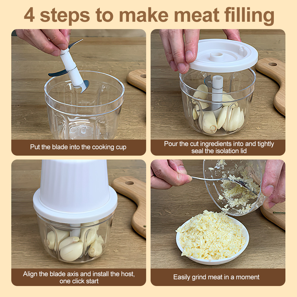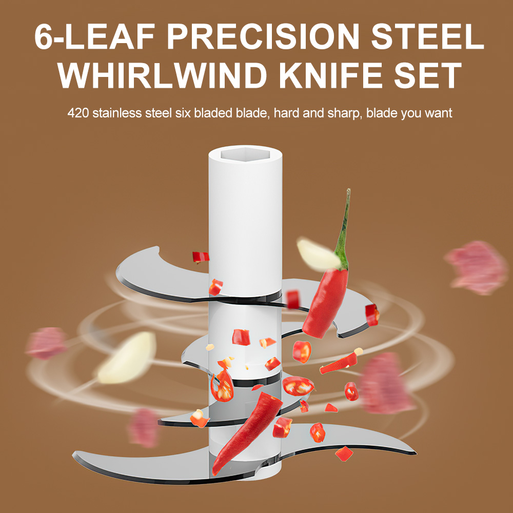 -Equipped with 6 stainless steel b-lades, it ensures faster chopping speed and better results, in just a few seconds, you can chop all kinds of food evenly.
