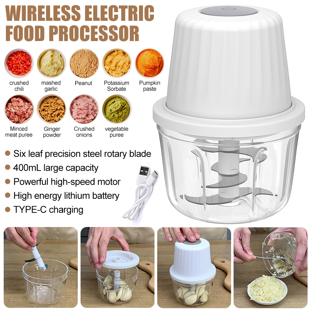400ML Electric Mini Garlic Chopper Meat Grinder Nut Fruit Vegetable Food Crusher