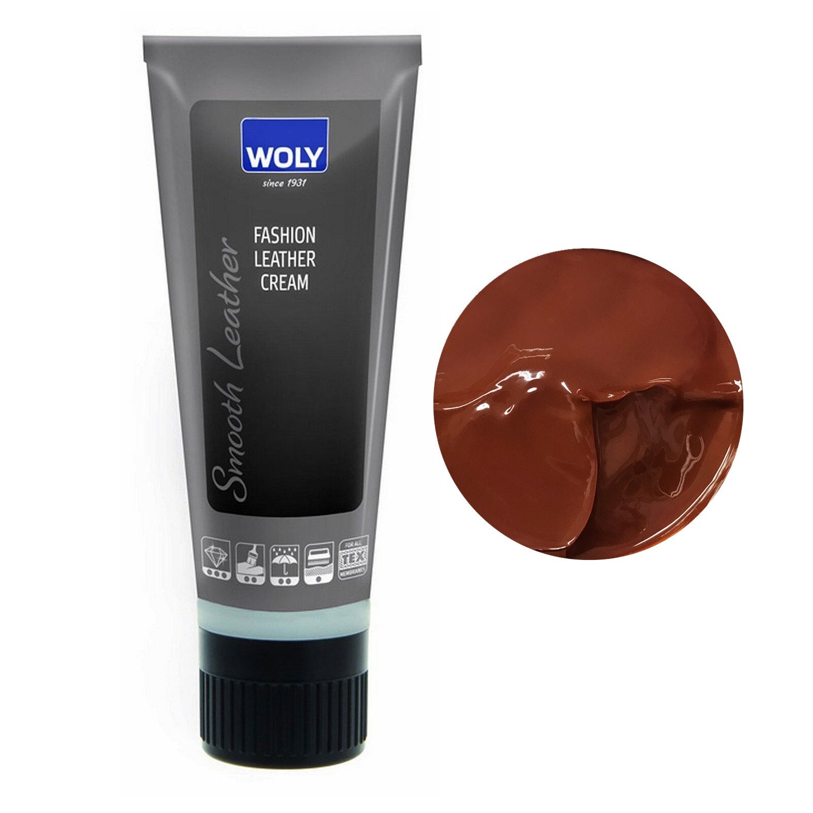 The Woly Leather shoe cream provides long-lasting colour and a beautiful gloss finish. The shoe cream is suitable for all smooth leathers and it not only adds colour but also renovates and conditions the leather bringing the footwear back to life and restoring the original quality.