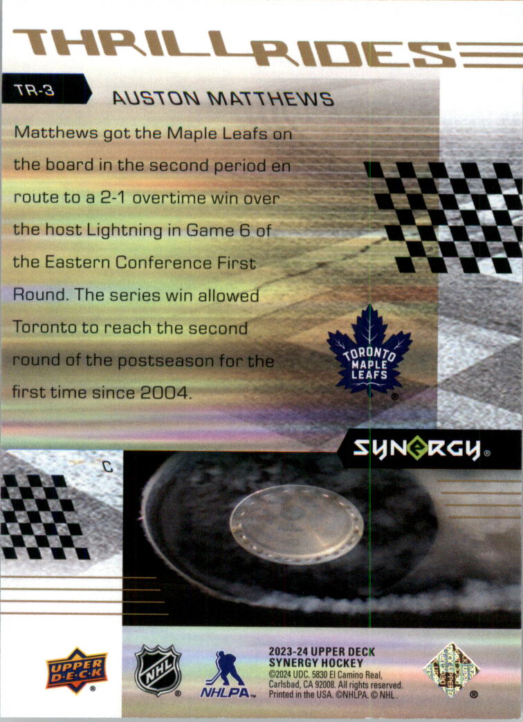 2023-24 Synergy Thrill Rides #TR3 Auston Matthews - HKY