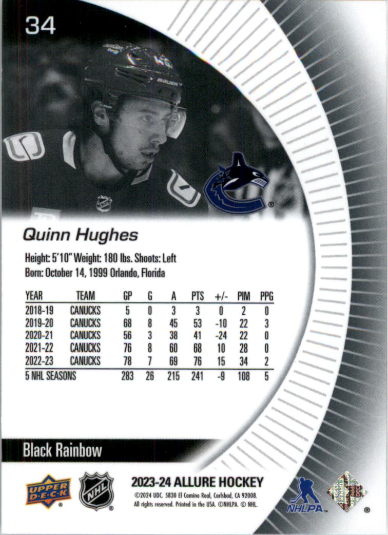 2023-24 Upper Deck Allure Black Rainbow #34 Quinn Hughes - HKY