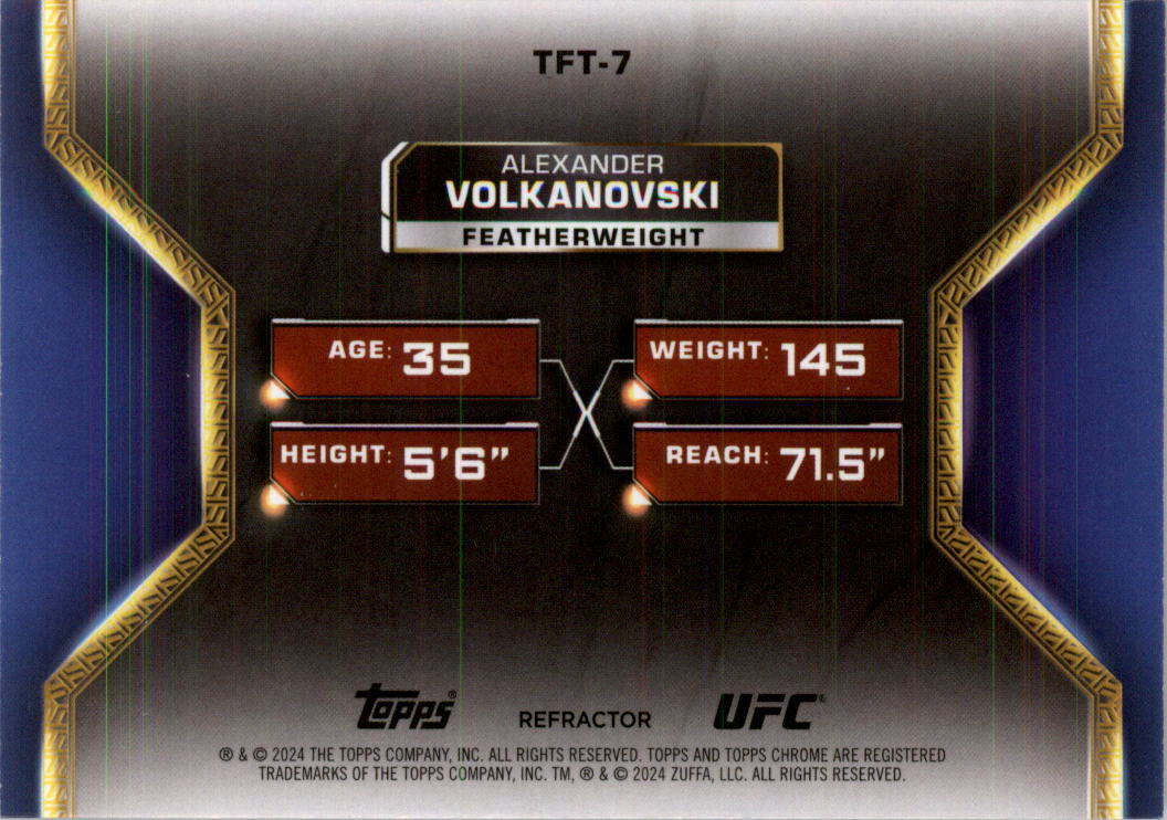 2024 Topps Chrome UFC Tale of the Tape Refractors TFT7 Alexander Volkanovski MMA
