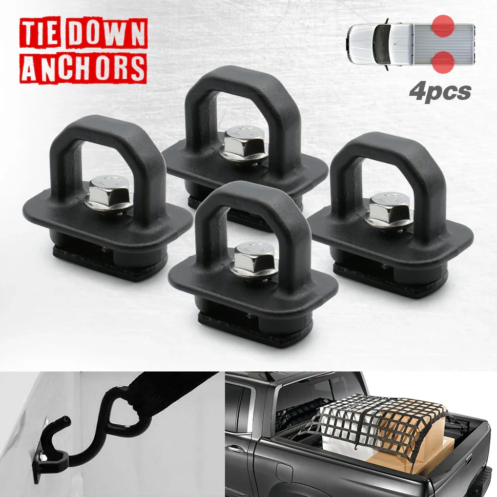 Enhance your truck's cargo management with these Universal Truck Cargo Tie Down Anchors Hooks. Crafted for versatility, they provide secure anchor points on your truck bed's side walls, ensuring your gear stays firmly in place during transit.