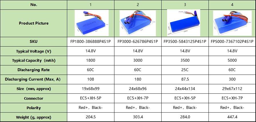 EC5 for discharging, and XH-5P or 7P Balance charger connector.