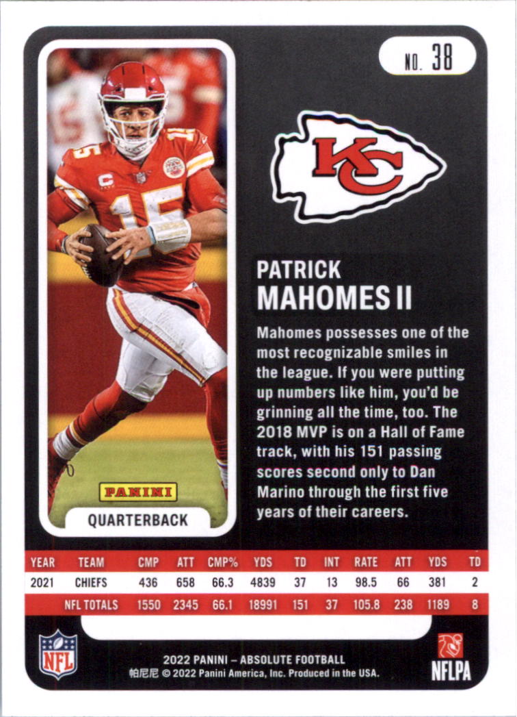 2022 Absolute Green #38 Patrick Mahomes II - FB