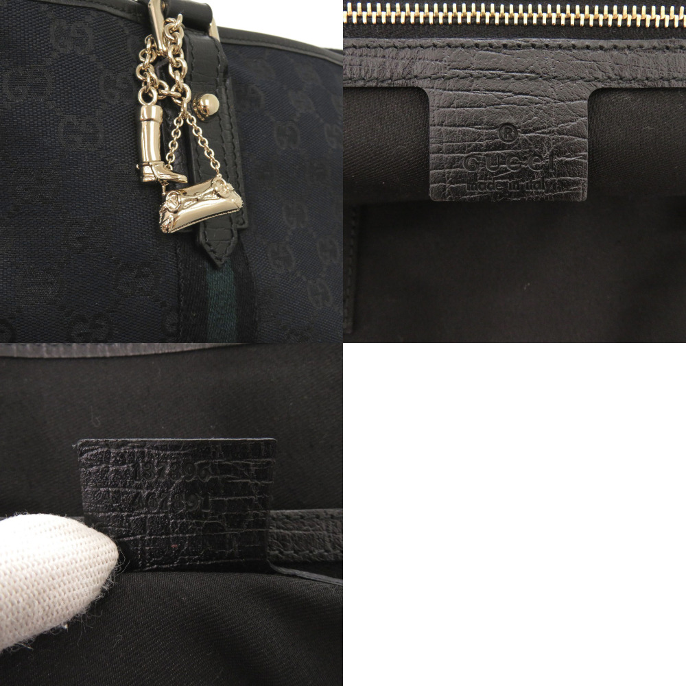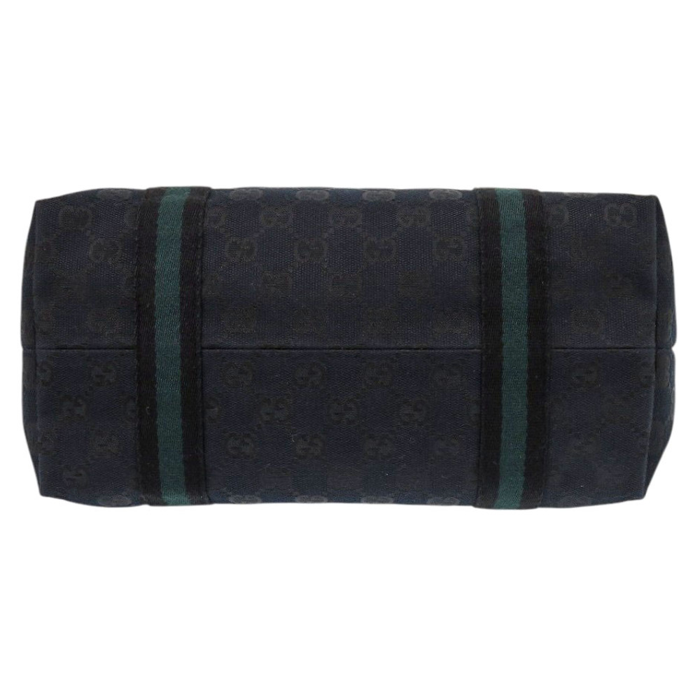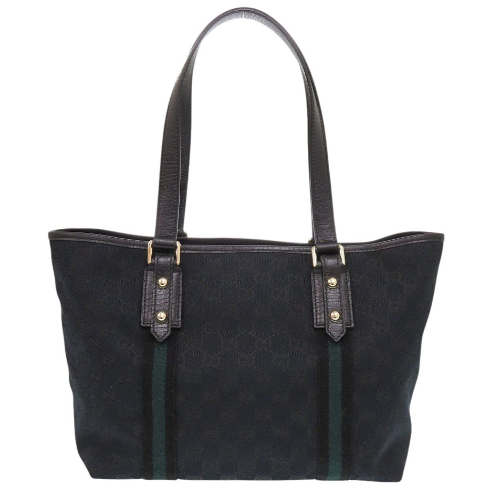 AUTHENTIC GUCCI 137396 GG Sherry line Tote Bag Black Green Canvas
