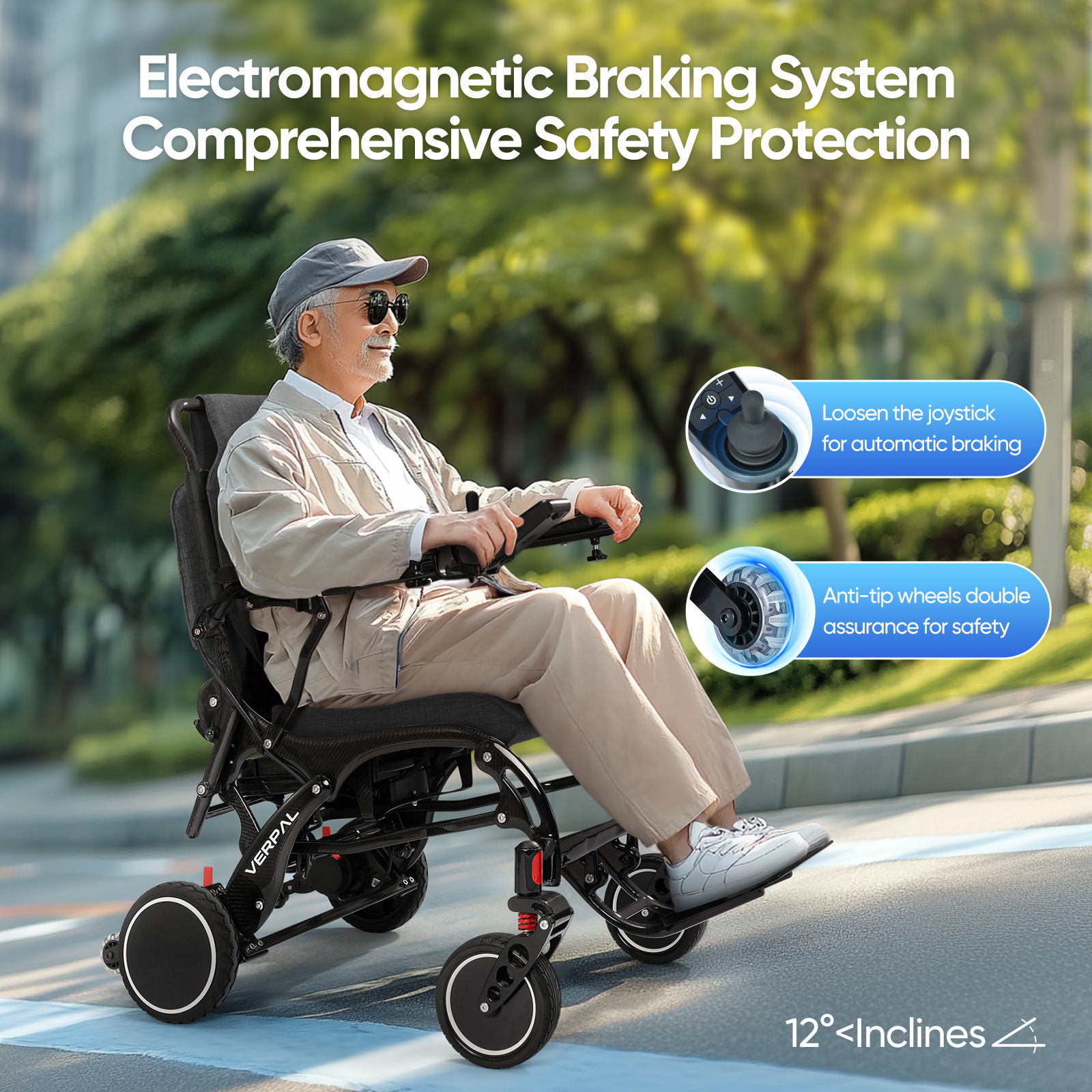 Safe Navigation for Peace of Mind: Designed with safety in mind, the wheelchair features dual controllers: a driver controller and a rear controller for an accompanying assistant. Enjoy peace of mind with a built-in electromagnetic braking system for stable operation, a reliable seat belt, and the use of aerospace-grade materials for added safety. The adjustable armrests also facilitate easy boarding.