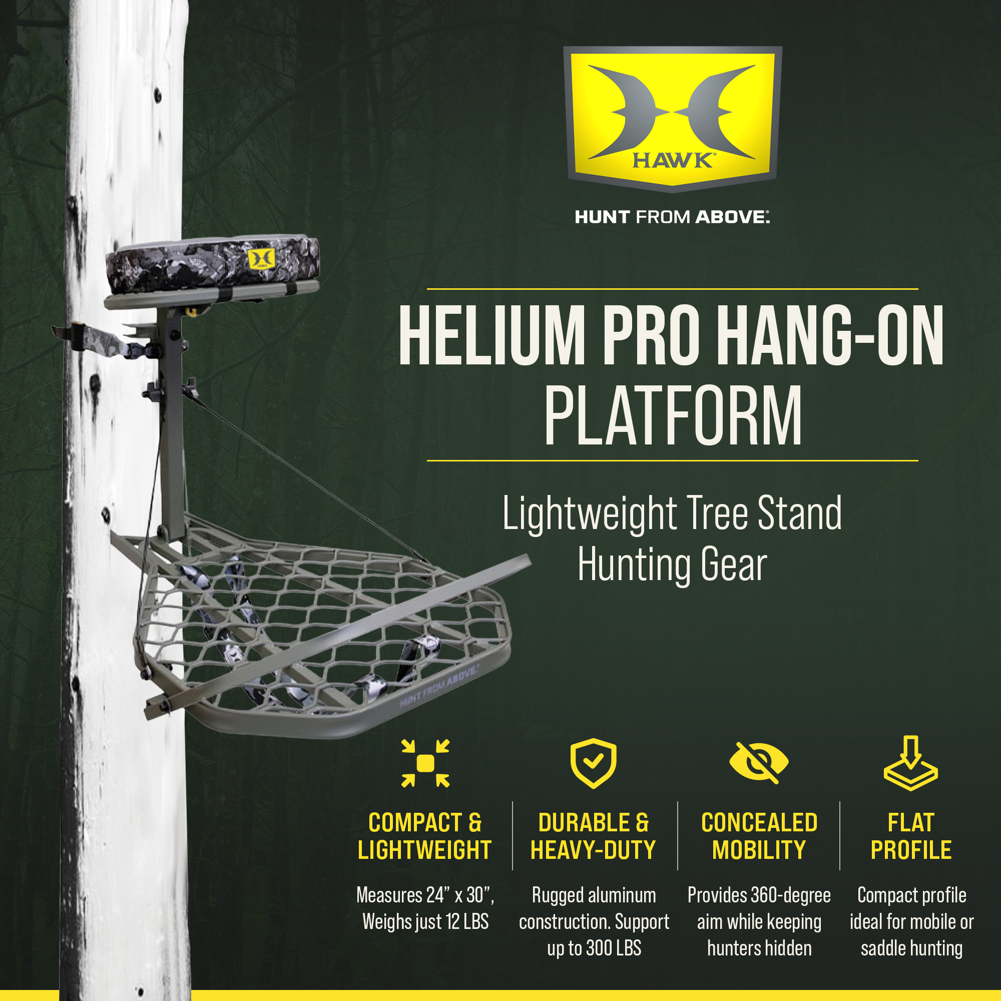 Whether you're climbing into a remote oak stand at dawn or making your way deep into public land, Hawk delivers rugged, barely-there, and hunter-trusted solutions built for the modern mobile hunter. All products in the Helium series are designed with stealth, comfort, and performance in mind, offering easy packability, whisper-quiet preparation, and dependable hold in any environment.